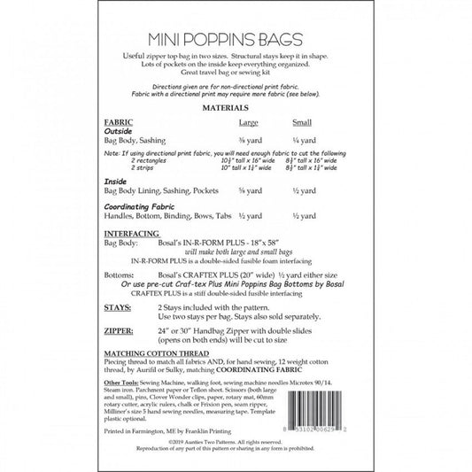 Mini Poppins Bags Aunties Two Pattern AUTA629 2 Metal Stays are Included