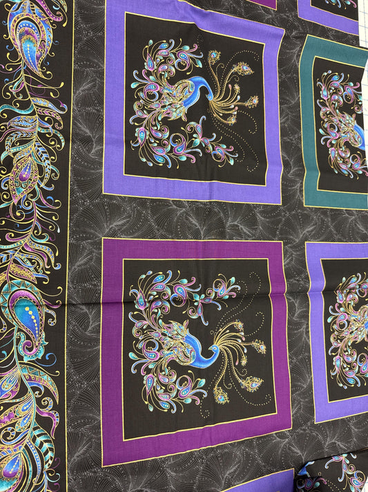Peacock flourish, fabric Ann Lauer Grizzy Gulch for Benartex 24” x 44” panel -