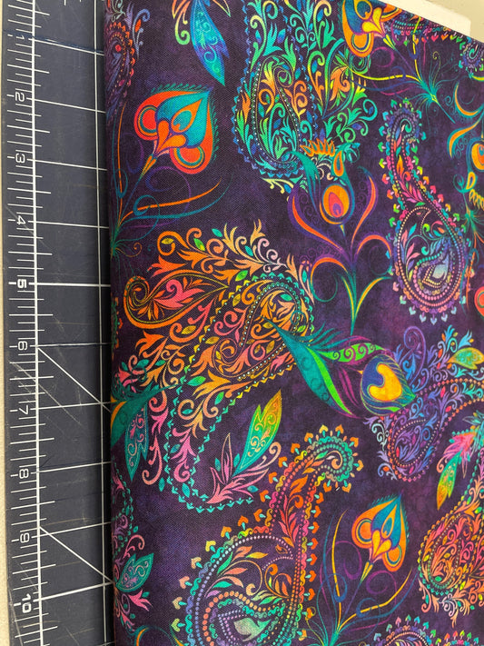 QT Fabrics - Eclectica - Peacock Feathers Purple Background - Priced by the 1/2 yard