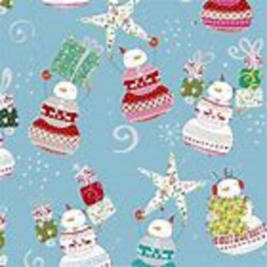 Snowmen with Packages Happy Christmas QT Fabrics Light Blue Background Priced by the Half Yard Cut from Bolt