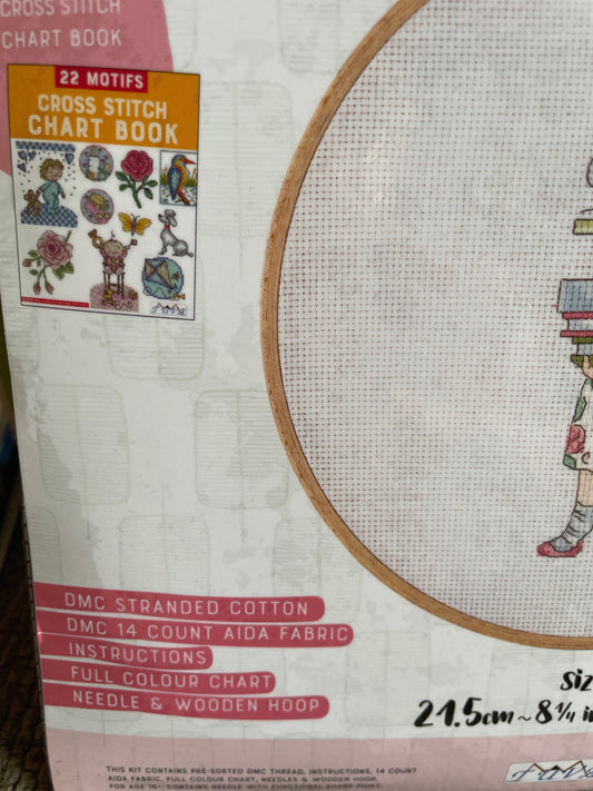 So Many Books Counted Cross Stitch Kit- DMC thread with Wooden Hoop for Framing