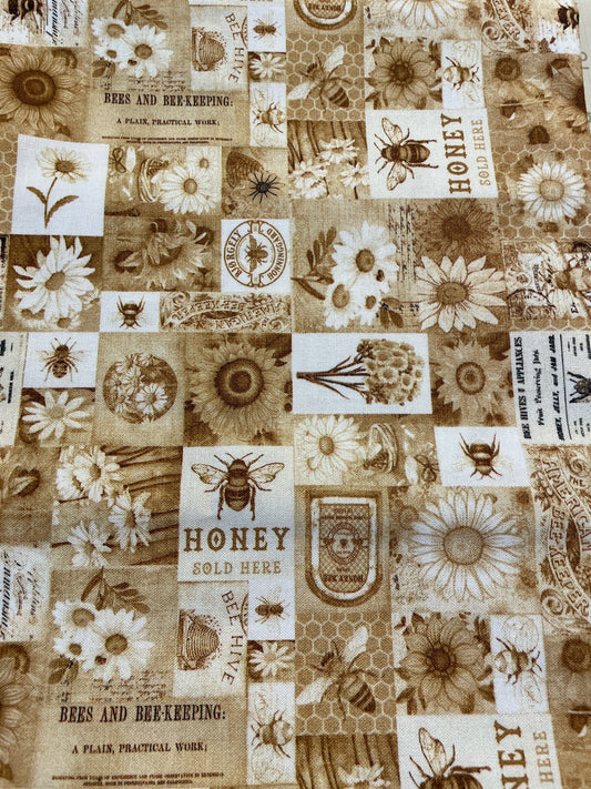 Always Face Sunshine - Bees on Gold Background - Collage - Dan Morris - QT Fabrics - Priced by the 1/2 Yard - NEW