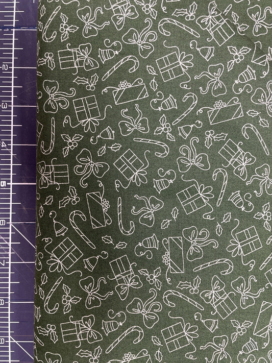 Christmas Fabric - Green packages - Riley Blake - Scaredy Cat -Priced by the 1/2 yard Cut Continuously