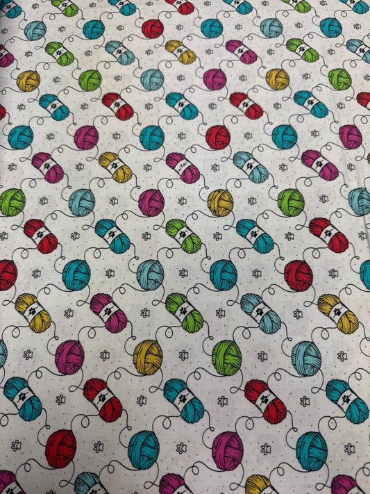 Cat and Paws Yarn Ball - Cat Flat - Cat Fabric -QT Fabrics , Priced by the 1/2 yard - Cut in 1 continuous piece