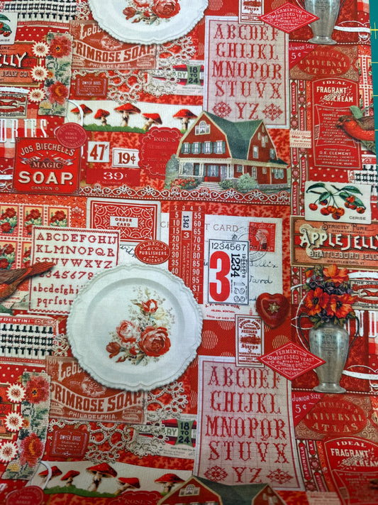 Cathe Holden - Curated in Color Red Collage - Moda Fabric - 7460-12 vintage images -by the half yard