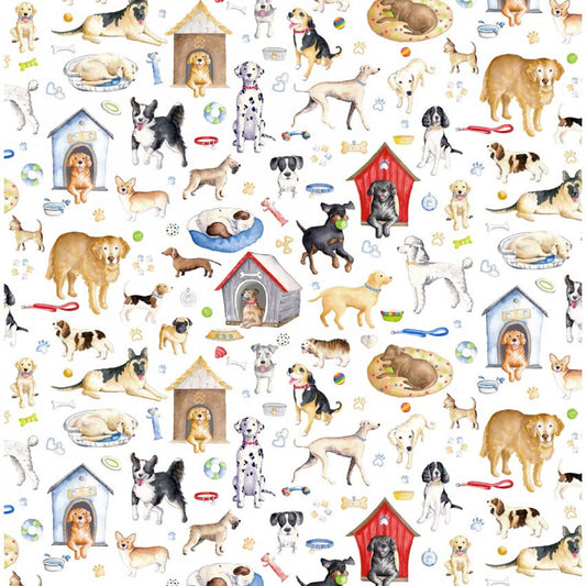 Dog Fabric Think Pawsitive - by Andi Metz - Dogs Rule - White Background Fabric - Priced by the 1/2 Yard - Cut continuously