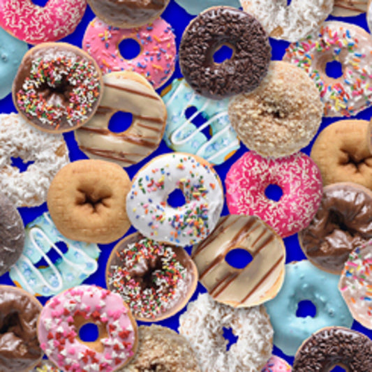 Donuts Fabric on Royal Blue Background - QT Fabrics - 27822-Y Priced by the 1/2 Yard - Precut into 1 yard cuts