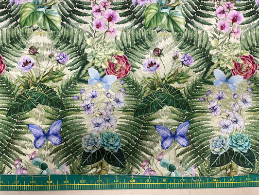 Botanical Succulents Jason Yenter In the Beginning Fabric Fern and Butterfly print By Half the yard