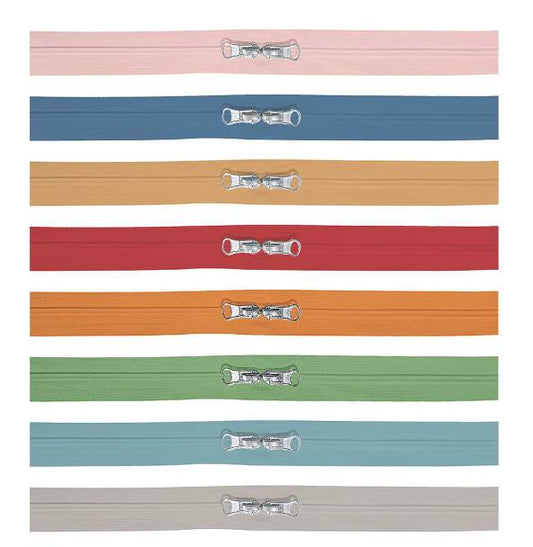 Lori Holt Calico 16” Zippers 2 - 8 zippers - Assorted Colors - double zipper pulls