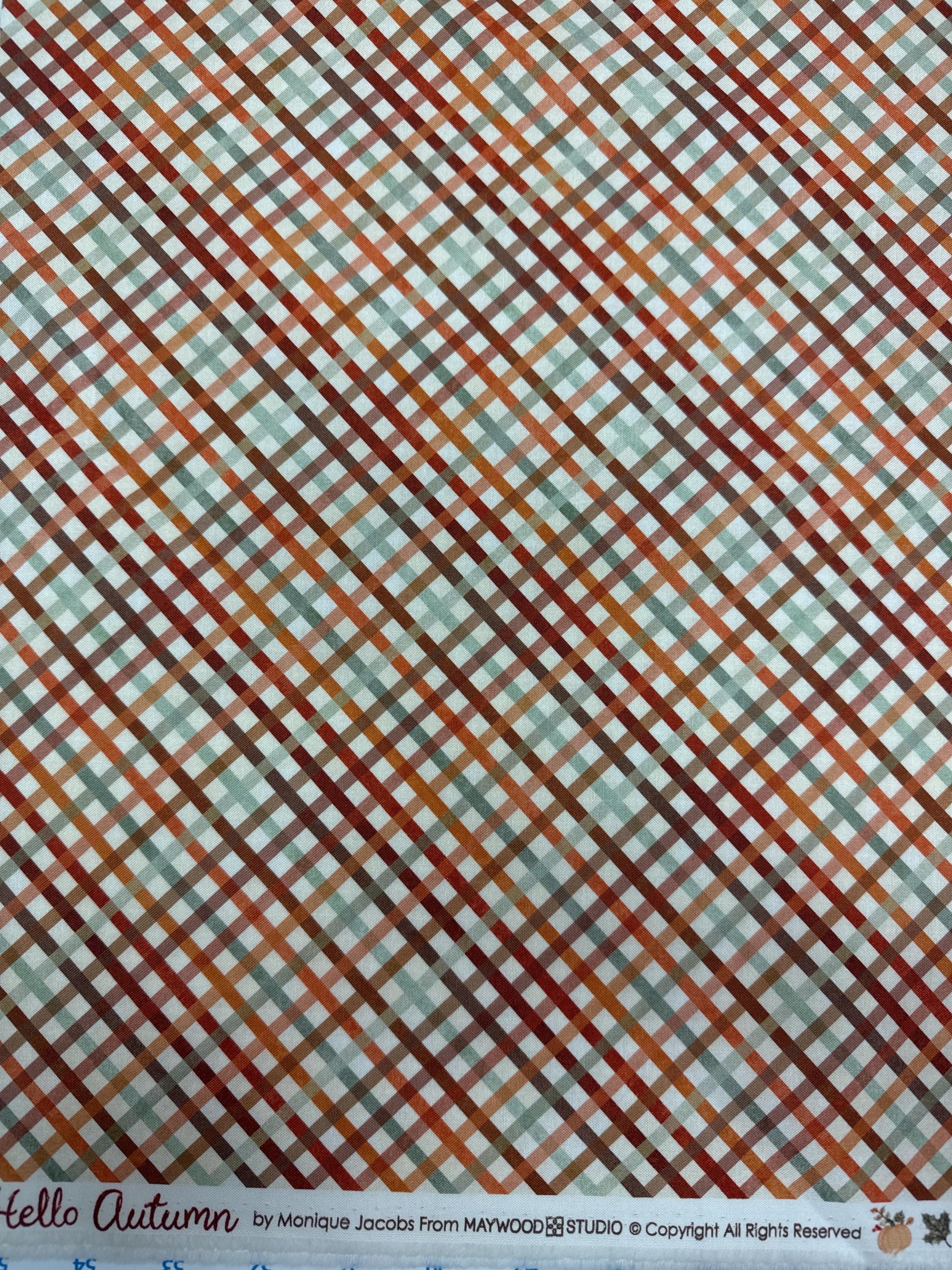 Hello autumn diagonal plaid by Monique Jacobs from Maywood studio fall Thanksgiving fabric sold by the half yard cut continuously from the bolt