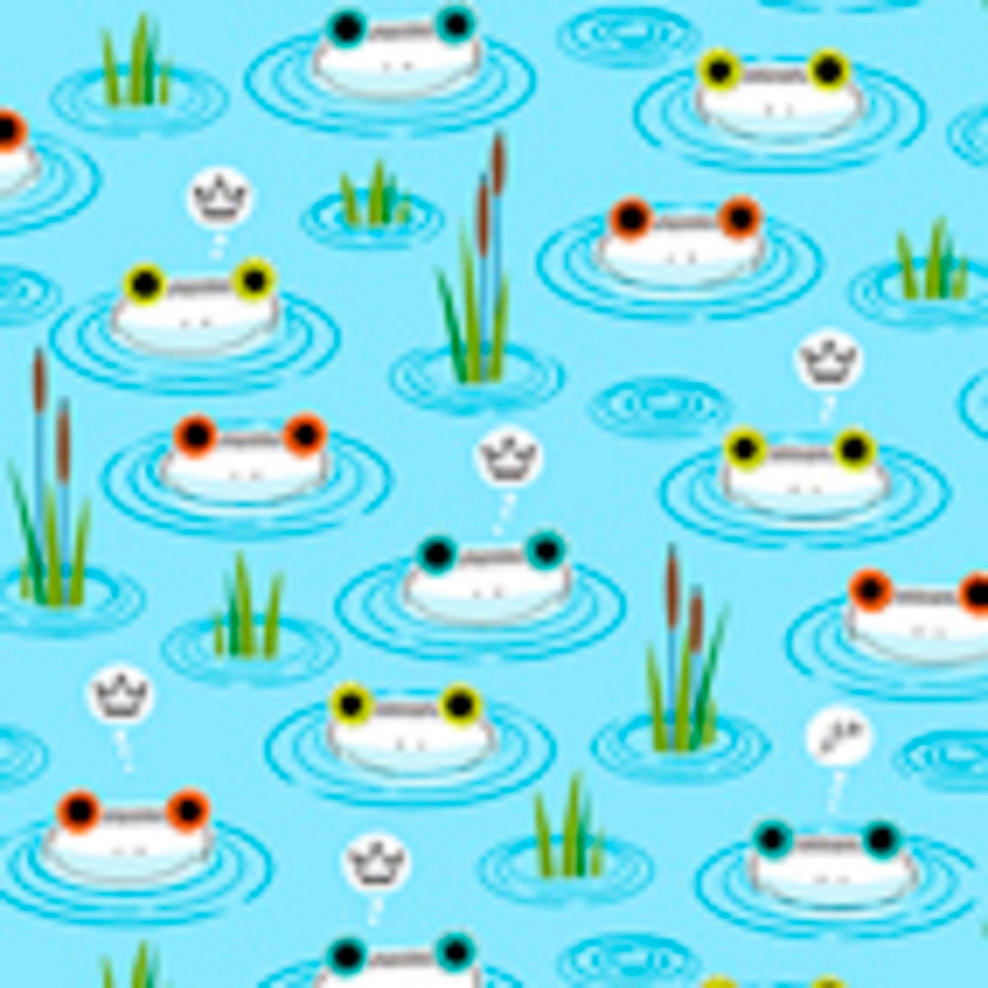 Hop to It Frog Crowns Fabric on Turquoise Background Lily Pads QT Fabrics - Priced by the 1/2 Yard - Cut from Bolt