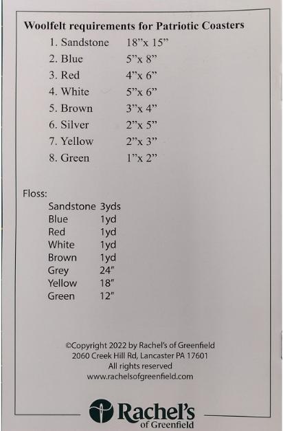 Kit Patriotic Americana Coasters wool felt kit Rachel’s of Greenfield