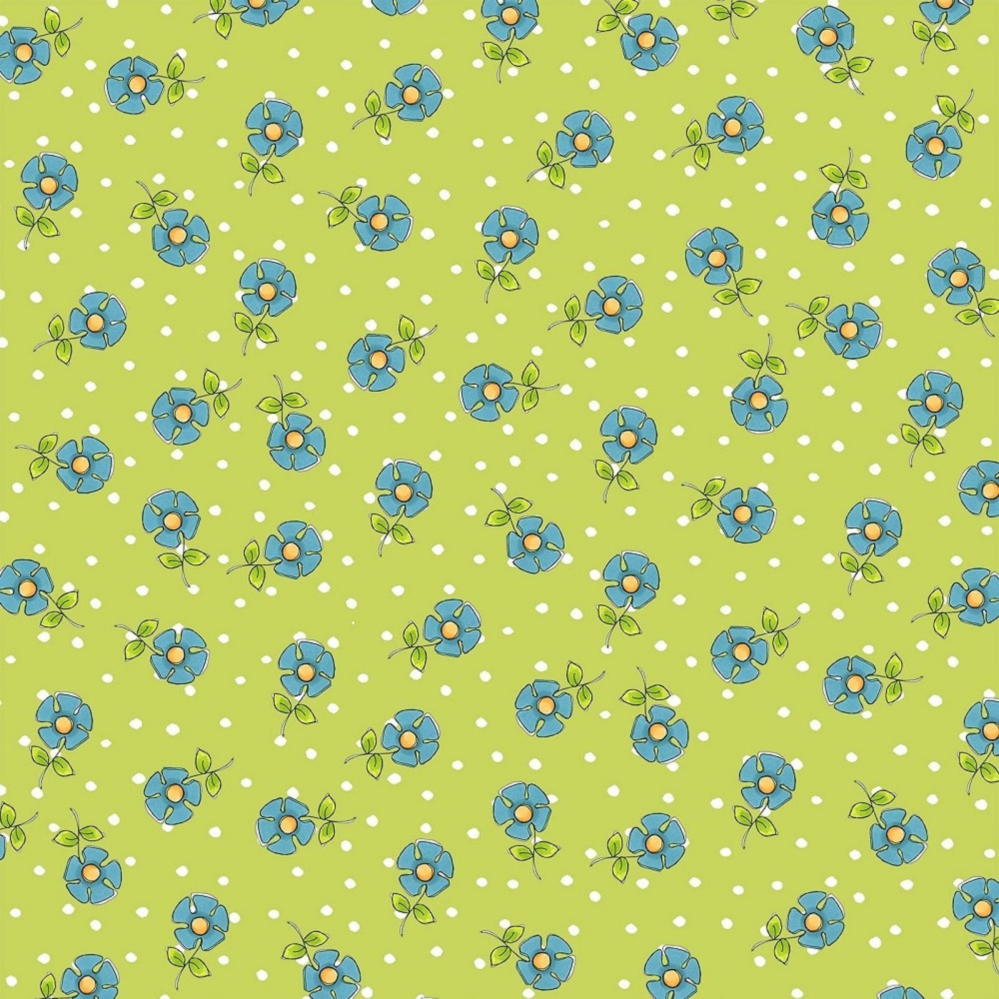 Loralie Daisy Dots Green Blue Daisies Priced by the Half yard
