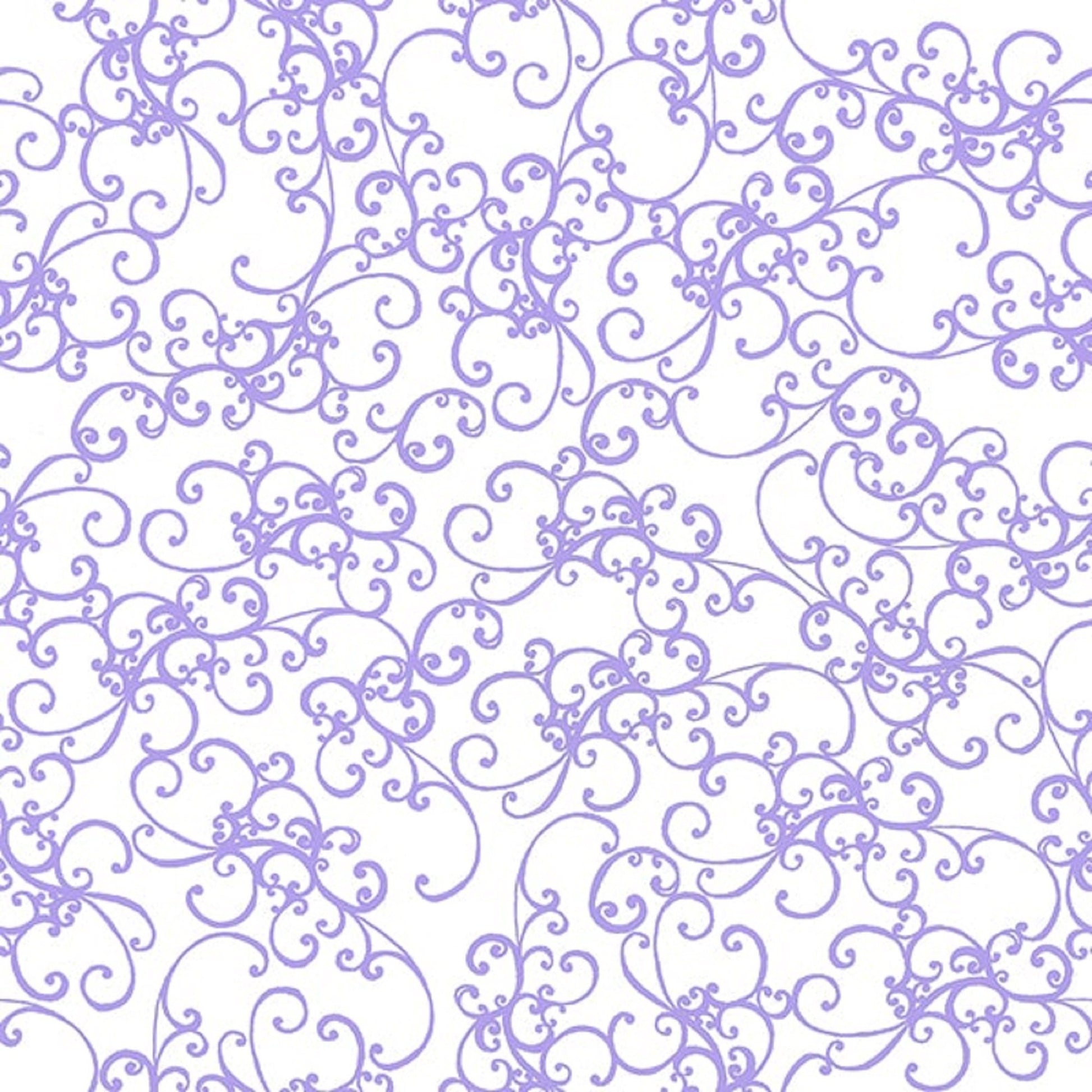 Loralie Elegant Scroll Lilac on White Background Priced by the Half yard