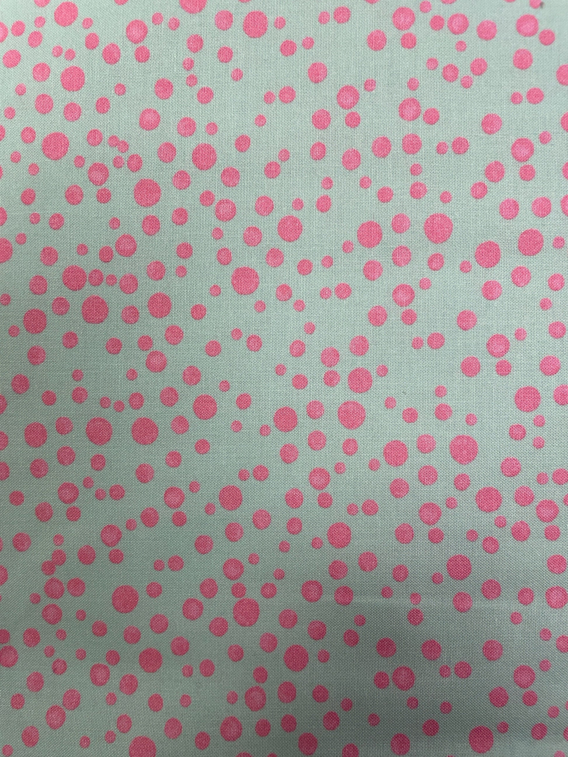 Loralie Pink Balloon Dots on Sage Green Fabric Priced by the Half yard Cut continuously