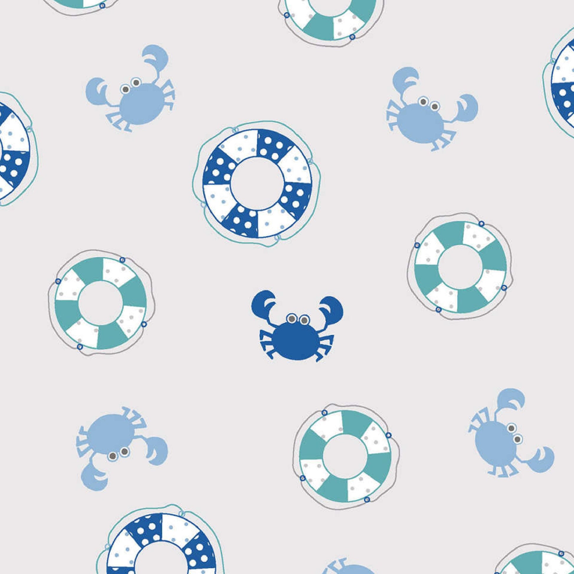 Maywood Kimberbell Vintage Boardwalk- Blue & Aqua Crabs on Gray 9713-K Life Preservers by the 1/2 yard
