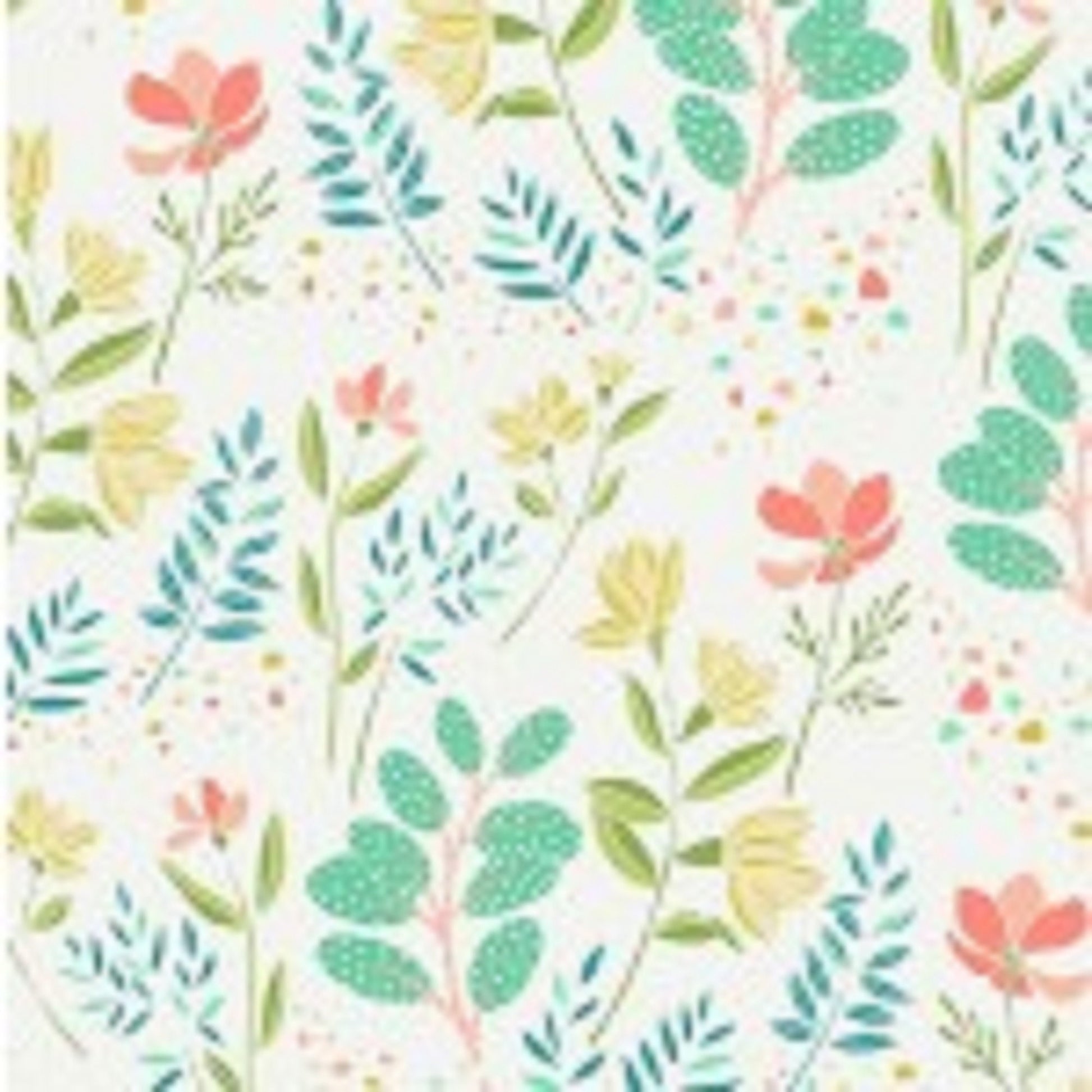 Michael Miller Delight Folk Floral DC8674D Teal Colorway on White Background Priced by the Half yard Cut off bolt in 1 continuous piece