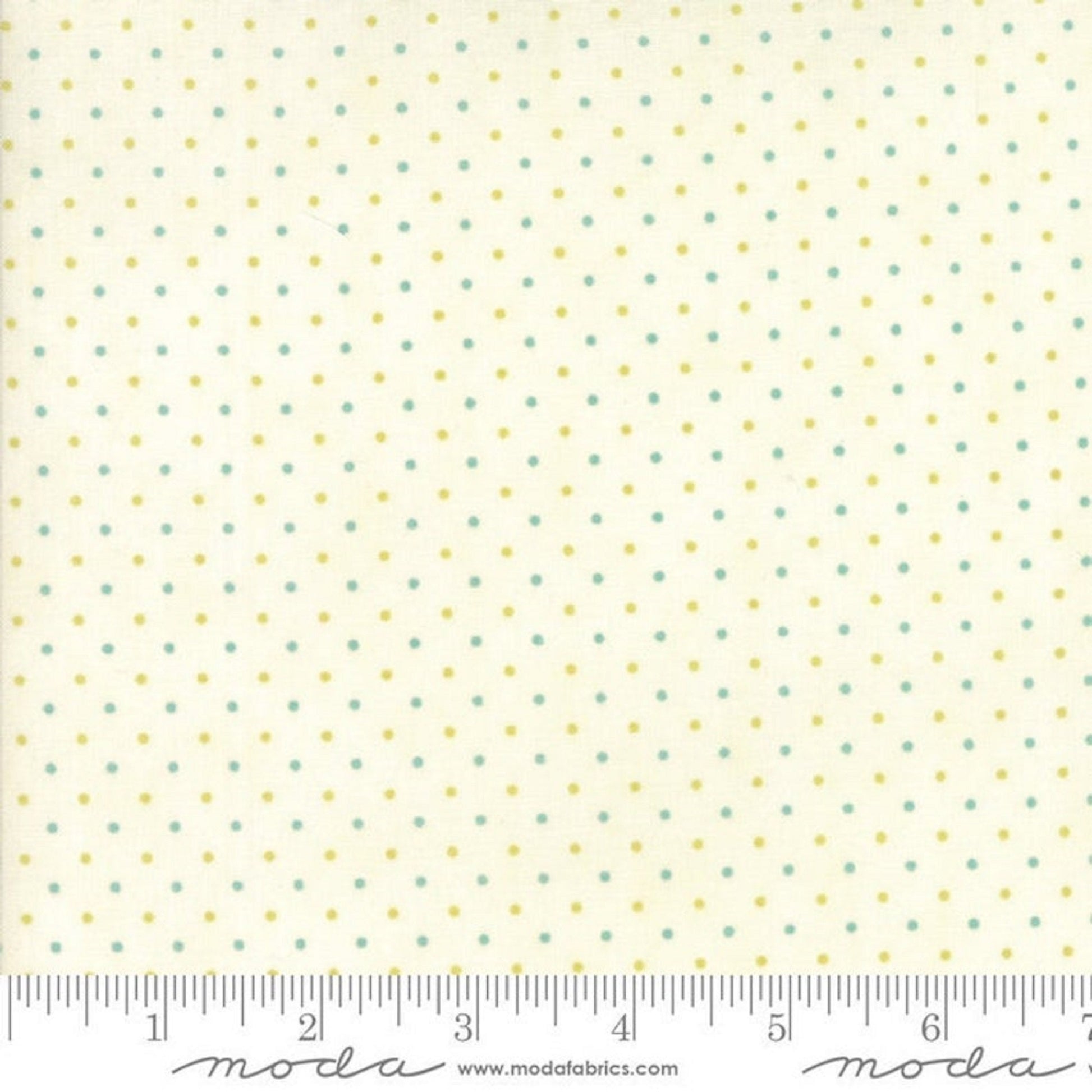Moda "Essentially Yours W" Teal and Lime Dot Fabric on Cream Background by the Half Yard Cut continuously